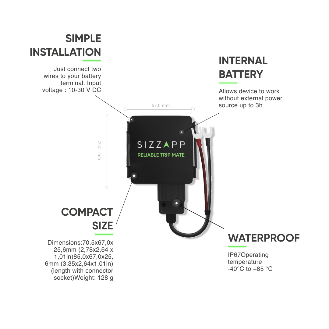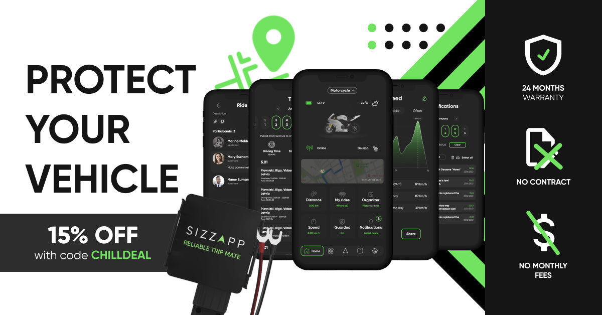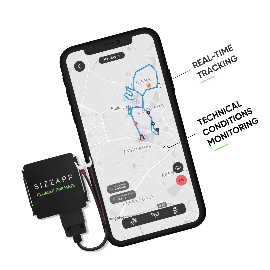 SIZZAPP is a simple, plug-and-play GPS tracker that connects directly to the bike’s battery and links to the rider’s smartphone.